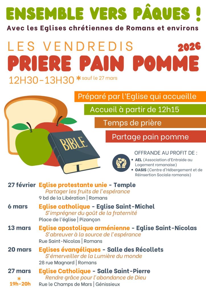 Culte Famille : chaque 1er dimanche du mois, de septembre à juin. Le culte est suivi d’un repas partagé. Chacun apporte ce qu’il veut !